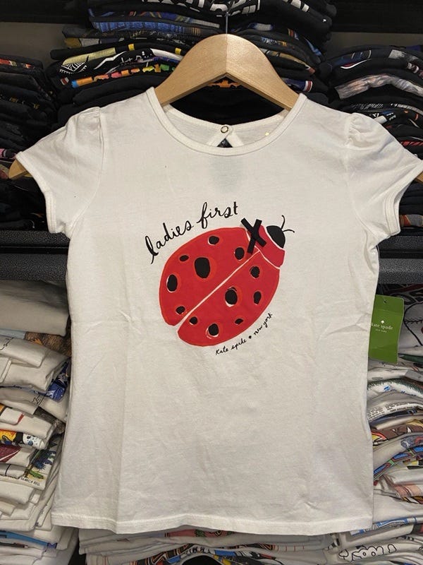 Kate Spade “Ladies First” Shirt — M, $24.95. This is a good example of the good kind of kitschy, in my opinion. It would be so cute paired with the below Lilly Pulitzer pants and these Viani Milano Mary Janes ($155).