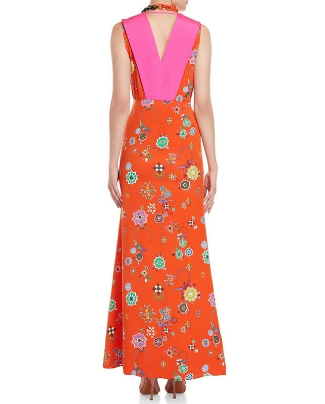 Emilio Pucci Grasshopper Zinnia Gown — 8, $399. I can imagine wearing this at the Ballet in the Bloom performance at Desert Botanical Garden. The grasshoppers are discreet and the plunging back is fun, flattering and sexy.