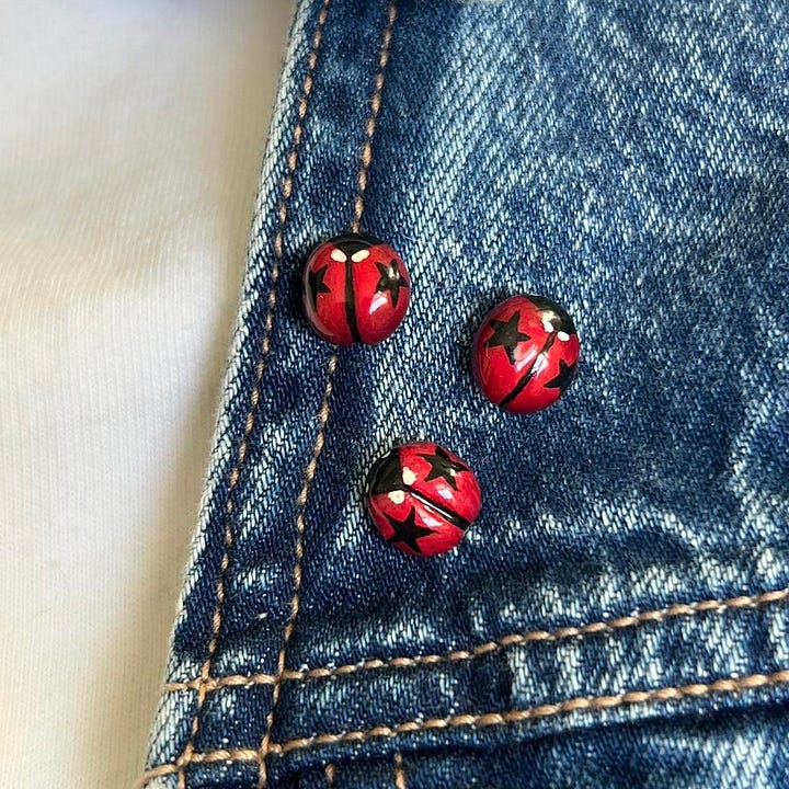 Star Ladybug Pins — $12 per pin.